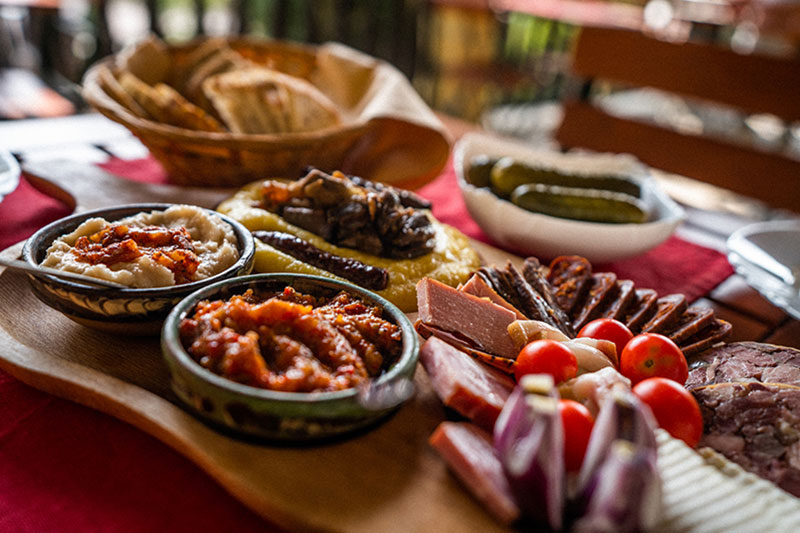 El restaurante de Casa cu Tei ofrece un ambiente rústico y cenas en el interior y al aire libre. Se sirve a los huéspedes una gran variedad de platos, incluidas especialidades de Buzo.